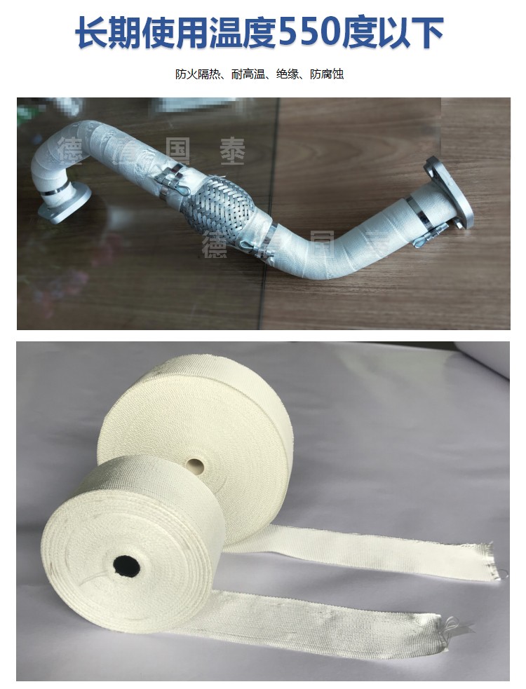 Glass fiber tape: long-term use temperature below 550 degrees, with high temperature resistance, heat insulation, insulation, fire resistance, corrosion resistance, aging resistance, climate resistance, high strength, smooth appearance and other characteristics.