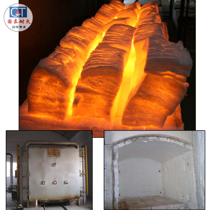 多晶莫來石PMF100系列纖維模塊,容重為96-100kg/m2,模塊不含任何粘結(jié)劑,耐酸、堿,且有很好的彈性和柔性,纖維色澤純白。適用于1700°C以下的各種高溫工業(yè)窯爐作內(nèi)襯裱貼,直接接觸窯爐的熱源部位,具有絕熱,延長爐體使用壽命,節(jié)能增產(chǎn)、改善工作環(huán)境之功效。PMF100系列施工極為簡便、安全、可靠,只要清潔爐體表面,并進(jìn)行拉毛處理,在爐墻貼面和纖維貼面層涂抹上專用的高溫粘結(jié)劑,然后按一定的規(guī)則逐塊粘貼,整個(gè)表面粘貼完后用木板輕輕壓平即可,外表美觀。(注意:粘貼時(shí)纖維相互間要有一定的壓縮)