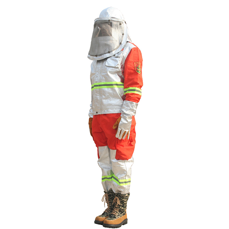 整套服裝采用特種復(fù)合芳綸布料和阻燃布料組合而成,具有防火、柔軟、耐磨、不變形、耐高溫等功能。